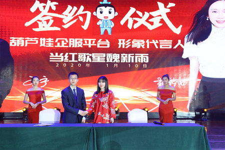 魏新雨与淦银盘集团签约,成为葫芦娃代言人,